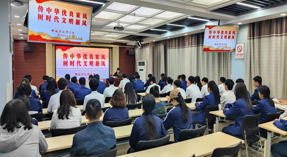4月23日下午,培训部(继续教育学院)在培训部三楼会议室举办“传中华优良家风 树时代文明新风”精神文明宣传讲座。全市学校德育工作优秀个人,学院孔繁森式优秀党员、先进工作者王协民老师担任主讲。教职工和学生共60余人参加活动。