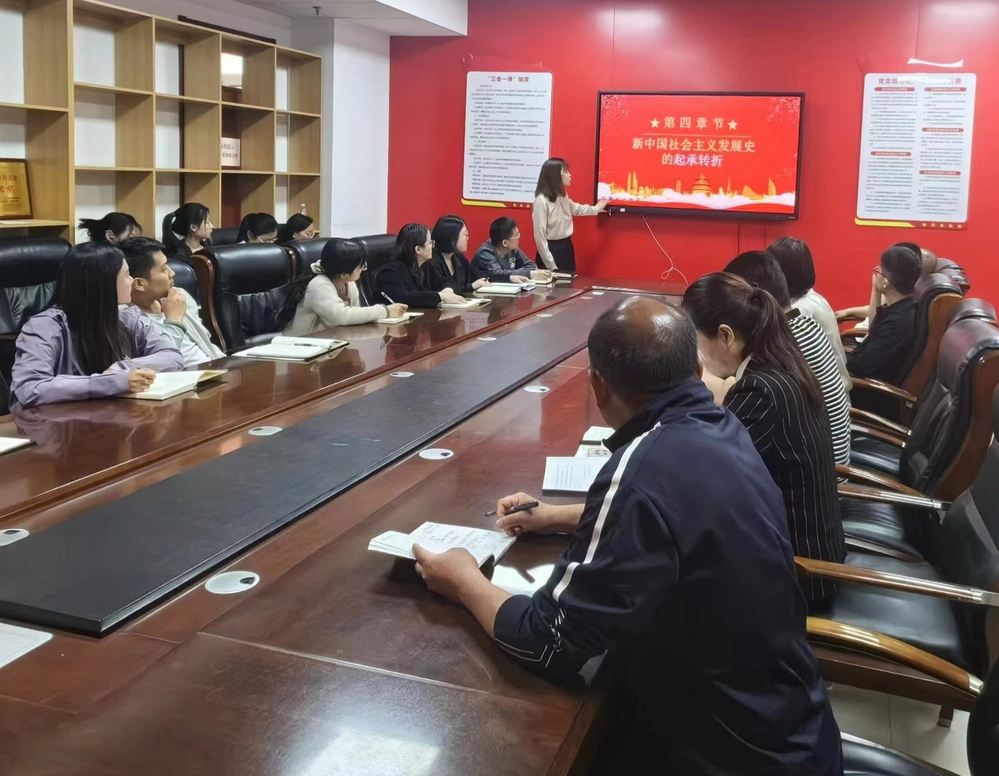 宣讲员王乃敏以通俗易懂的语言,深入浅出地解读了“社会主义发展史”的内涵与意义,从社会主义理论的发展、实践探索的历程以及中国特色社会主义的形成与成就等方面进行了生动阐述,让党员群众对社会主义发展脉络有了更为清晰的认识。生动的讲解让党员群众深刻领悟到中国特色社会主义的优越性,以及坚持和发展中国特色社会主义的必然性。大家共同回顾党的奋斗历程,汲取奋进力量,表示将积极发挥党员模范作用,为学院高质量发展注入精神动力。