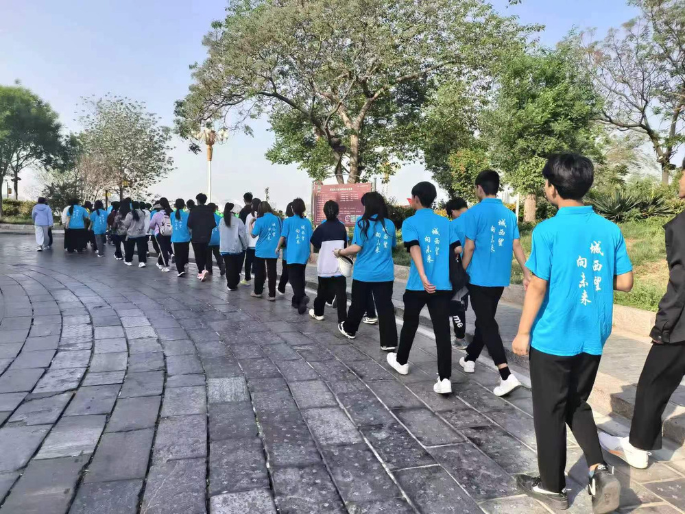 活动于4月26日清晨在光岳楼西门启动。学院青年团员身着统一服装,精神抖擞。他们从光岳楼西门出发,途经昌润路、海源路,再经西二环路向南,最终到达聊城高铁西站广场。沿途风景绮丽,青年团员们不仅欣赏了聊城的古街区和现代化新区,更亲身体会了城市发展的魅力。