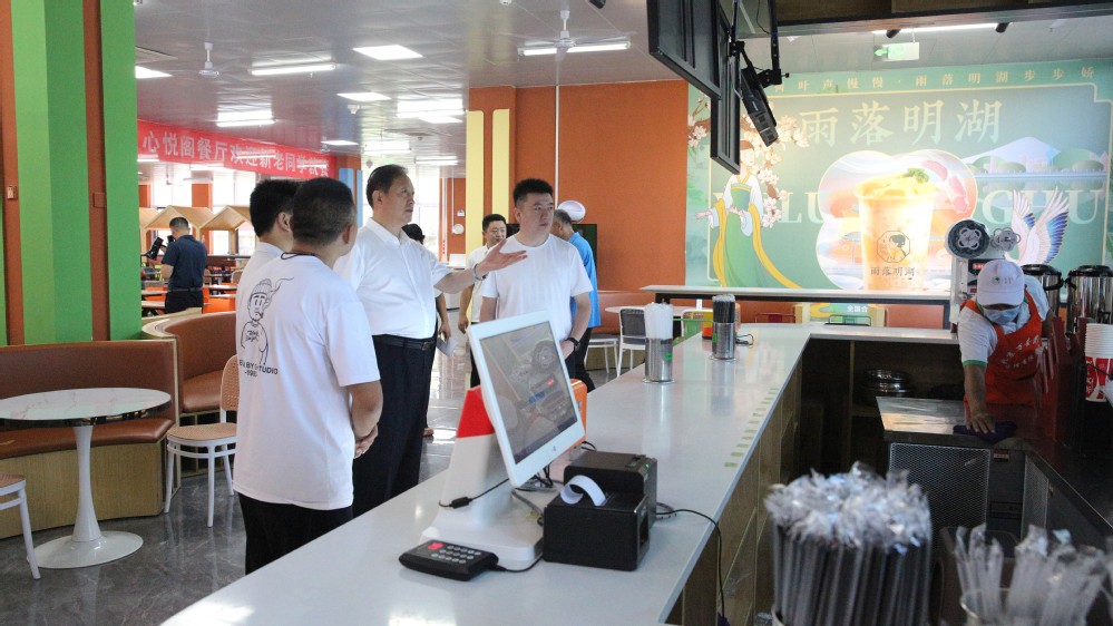 金同元首先对学生食堂进行了细致检查,重点查看后厨操作间、食材仓库和洗消区域,并详细询问食品留样制度执行情况。他强调“食品安全无小事”,食品安全事关每一位师生的健康,要求后勤管理部门严格把控食材溯源、加工制作和风险防控各个环节,坚决守住食品安全底线。
