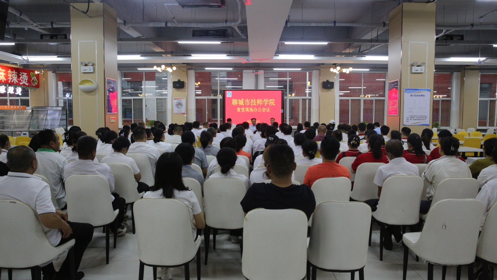 为保障新学期全校师生饮食安全,压实食品安全责任,9月5日,学院在北餐厅二楼召开食品安全现场办公会。学院党委副书记、院长徐公义,党委委员、副院长、食品安全总监于乐山出席,总务处负责人王令云、膳食科工作人员、食堂及超市全体工作人员参会。