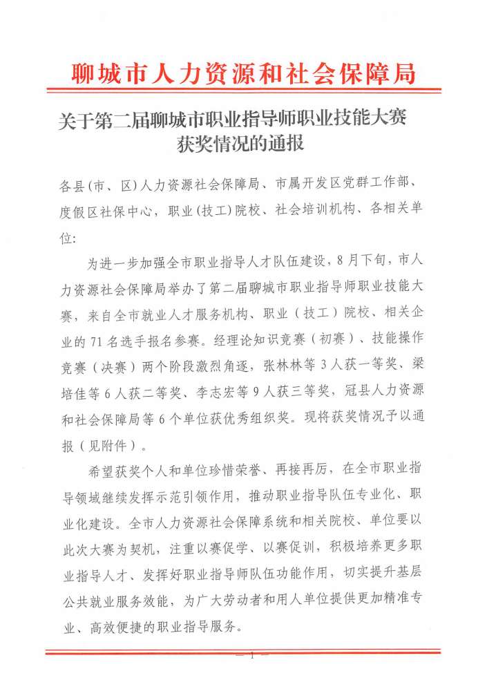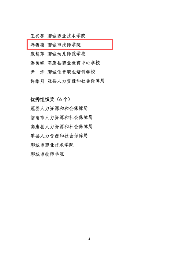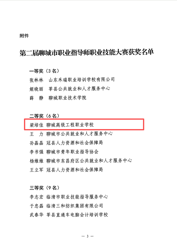 近日,由聊城市人力资源和社会保障局主办的第二届聊城市职业指导师职业技能大赛圆满落幕。本次大赛以“‘聊’亮职场 ‘指’引未来”为主题,旨在加强职业指导人才队伍建设,推动高质量充分就业。我院积极参与并取得优异成绩,其中,梁培佳、冯鲁燕分别荣获二、三等奖,学院荣获“优秀组织奖”。