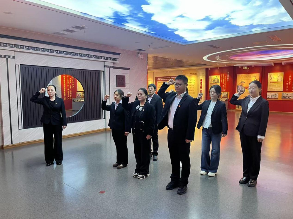 “我志愿加入中国共产党,拥护党的纲领,遵守党的章程……”全体人员重温入党誓词,声声震耳、字字千钧。