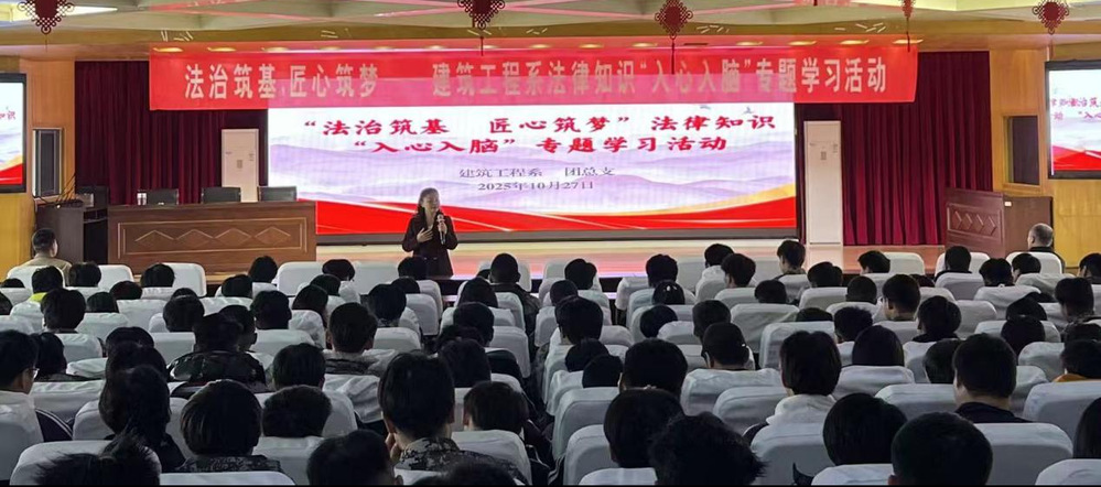 10月27日下午,建筑工程系举办“法治筑基 匠心筑梦”法律知识专题学习活动,系学管副主任纪红梅担任主讲。