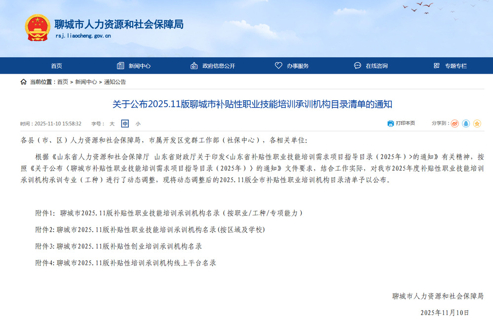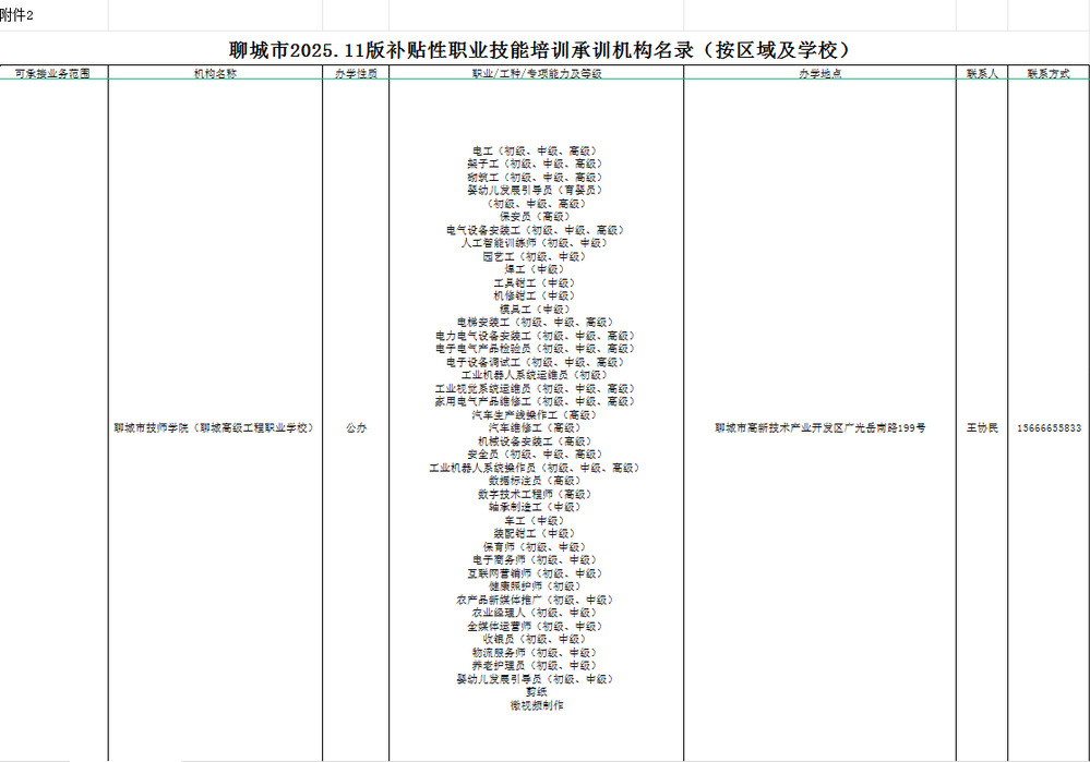 据悉,本次入选的承训机构目录是聊城市为深化职业技能提升行动、规范培训市场、确保补贴资金精准高效使用而设立的准入门槛。我院的入选,是市人社局对我院办学资质、培训能力与社会公信力的高度认可,为学院更好地服务聊城地方经济社会发展开辟了新的渠道。