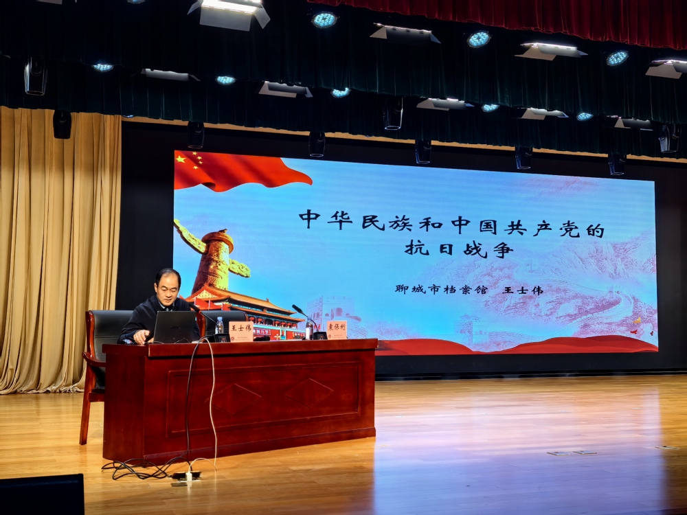 王士伟以“中华民族与中国共产党的抗日战争”为主题,通过详实的档案史料和感人至深的历史故事,系统回顾了中国人民抗日战争的艰苦历程与伟大意义。他结合本土红色档案资源,详细讲述了苏庄保卫战中聊城籍战士浴血奋战的英雄事迹,让大家在档案史料的浸润中深刻理解中国共产党在抗日战争中的中流砥柱作用。