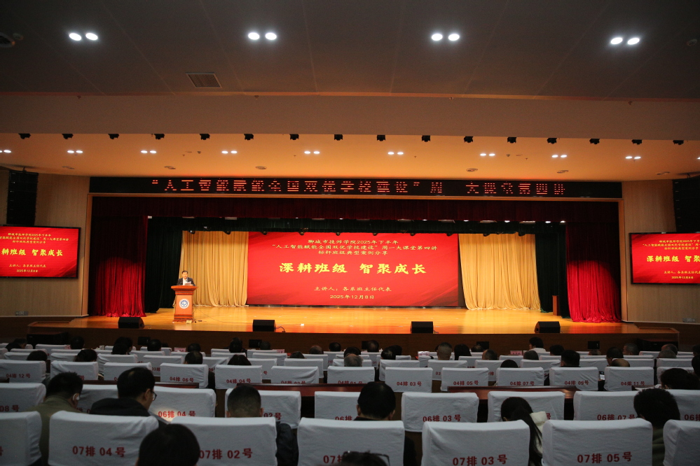为深入贯彻落实立德树人根本任务,加强班主任队伍建设,推广标杆班级班主任的管理经验,营造比学赶超、共同进步的良好氛围,12月8日下午,学院在实训中心A座报告厅举办2025年下半年“人工智能赋能全国双优学校建设”周一大课堂第四讲——深耕班级 智聚成长活动。学院党委书记金同元,党委副书记、院长徐公义,及领导班子成员出席活动。活动由党委委员、质量管理与绩效考核办公室主任王庆刚主持。副主管以上干部、全体班主任共200余人参加活动。