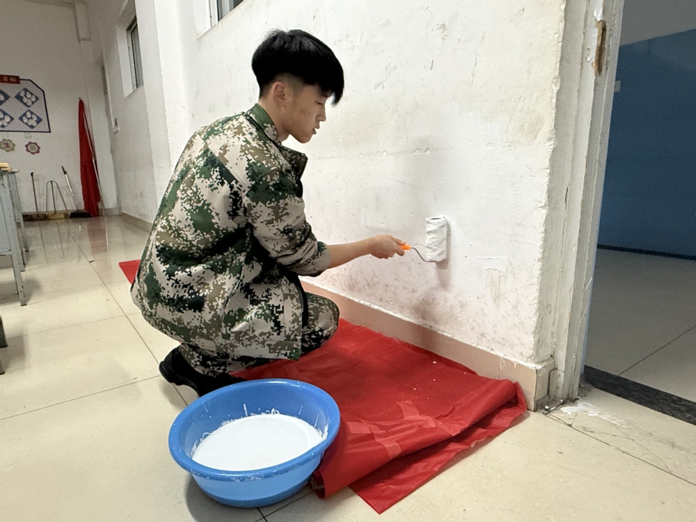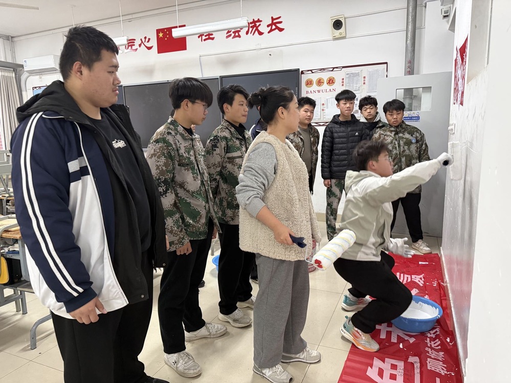 活动现场,大家热情高涨,分工协作。党员教师率先垂范,同学们则化身“粉刷匠”,打磨、调漆、上墙,动作认真而专业。经过两个下午的努力,斑驳的墙面变得洁白明亮。同学们纷纷表示,这次实践不仅用上了真本事,更在劳动中收获了满满的成就感与自豪感。