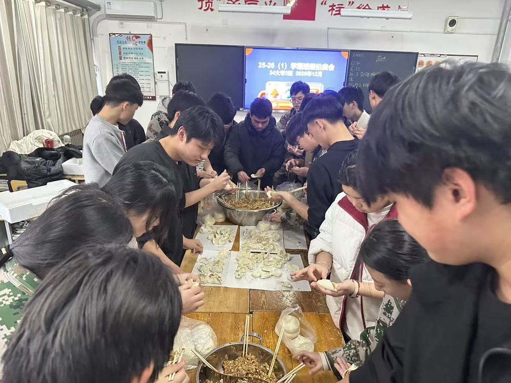 12月29日,建筑工程系24大专2班举办了别开生面的“班级拍卖会”暨包饺子联欢活动。学管副主任纪红梅、党员教师李保奎与师生欢聚一堂,共度温馨时光。