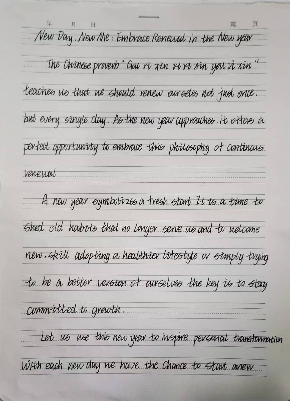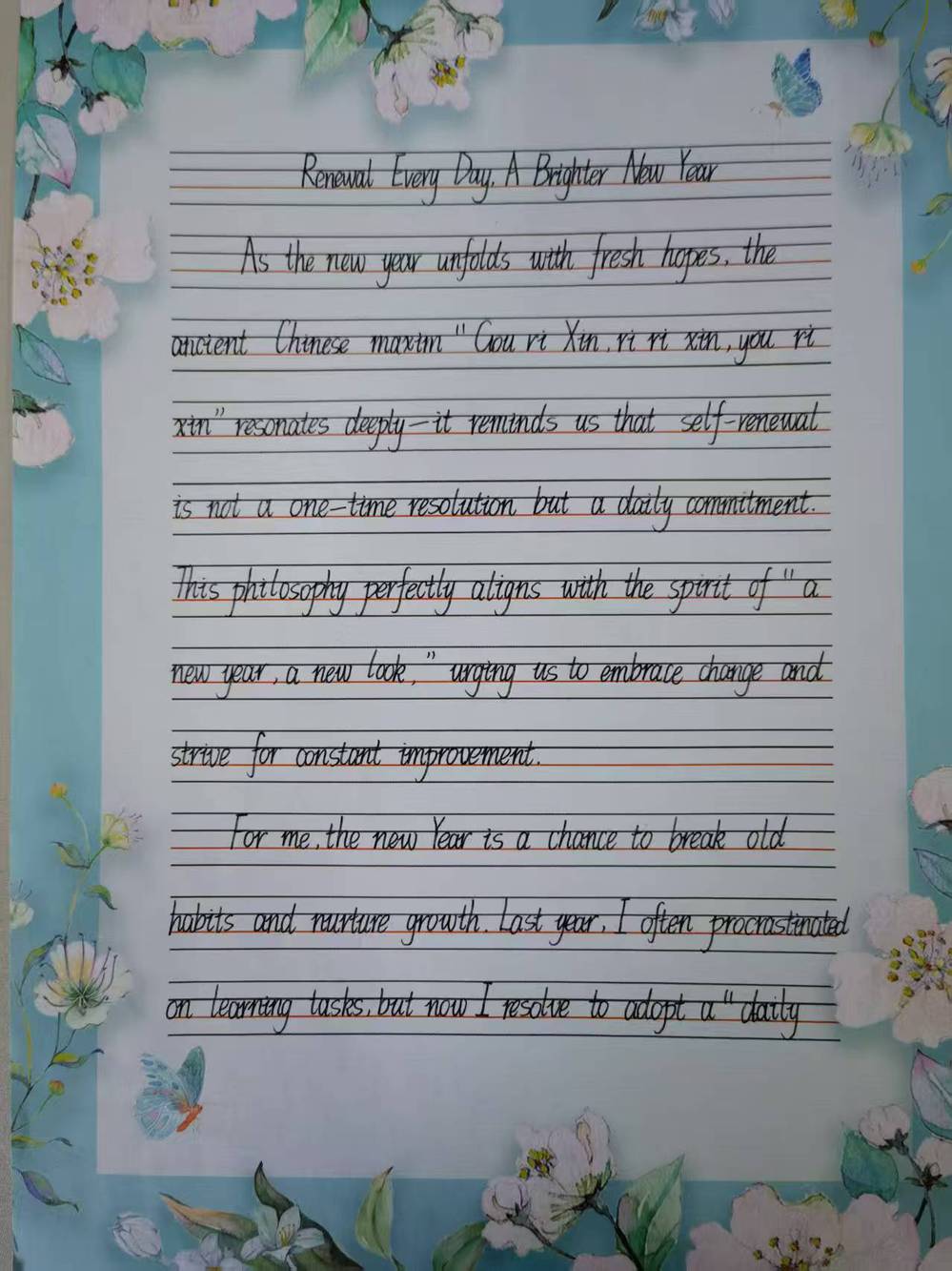 大赛以中华经典箴言“苟日新,日日新,又日新”为精神内核,拟定英文主题“New Day, New Me: Embrace Renewal in the New Year”。参赛学生围绕这一主题,或进行原创文段写作,或精心选编契合主题的英文内容,表达对自我革新的追求、对新一年的美好憧憬与坚定信心。