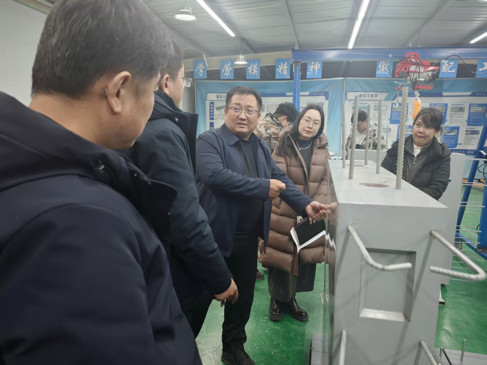 活动中,于磊立足聊城高品质建筑工程典型案例,分享数字技术在项目设计、施工管理等环节的应用要点与实操技巧,针对大家提出的预制叠合板后浇带模板支撑等新技术应用问题进行了详细解答。于磊还为备战技能大赛的学生进行现场指导,精准点拨竞赛重难点,助力学生打磨技能、提升实战水平。