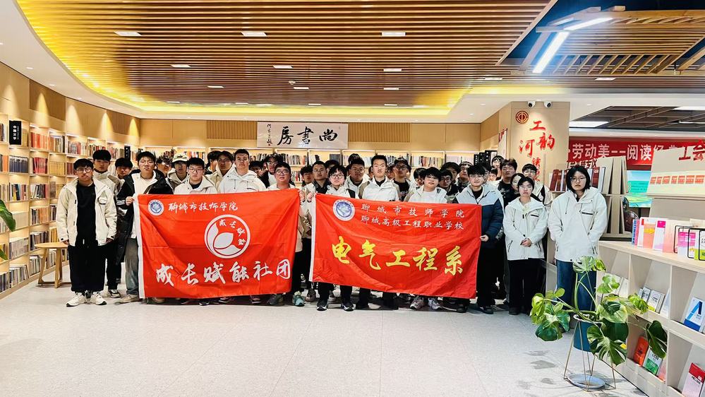 为深入推进教职工思想政治引领工作,引导广大教职工在阅读中汲取奋进力量,1月8日下午,由我院工会、图书馆、团委联合举办的“工韵河”系列之“书香润匠心 实干建新功”主题读书会,在聊城市工人文化宫成功举行。50余名师生代表参与活动,共同开启了一场启迪思想、浸润匠心的书香之旅。