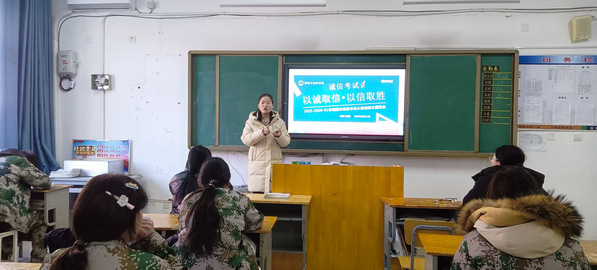 在各班级班主任与班委的精心筹备、协同推进下,主题班会有序进行。班主任结合近年来校内外考试违纪典型案例,深入解读《考场学生守则》核心条款,剖析作弊行为对个人品格、学业公平及学院声誉的多重负面影响,让纪律红线入脑入心。互动环节中,诚信宣誓、经验分享等互动环节,有效引导学生摒弃侥幸心理,牢固树立“以真才实学应试,以诚信品格立身”的正确理念。