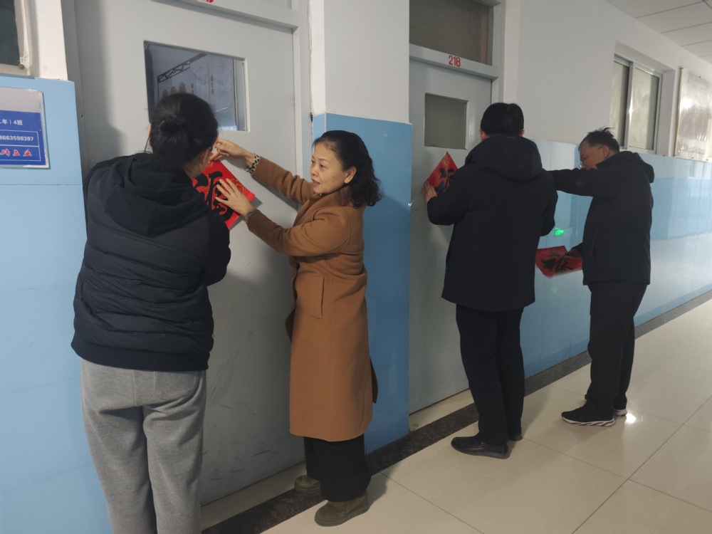 春节将至,年味渐浓,校园里处处洋溢着喜庆祥和的氛围。1月28日下午,在系主任柴春远的带领下,建筑工程系组织党员教师开展贴福字迎新春活动,大家携手将一张张“福”字工整地张贴于教室和办公室的门上,为校园添上浓浓年味。