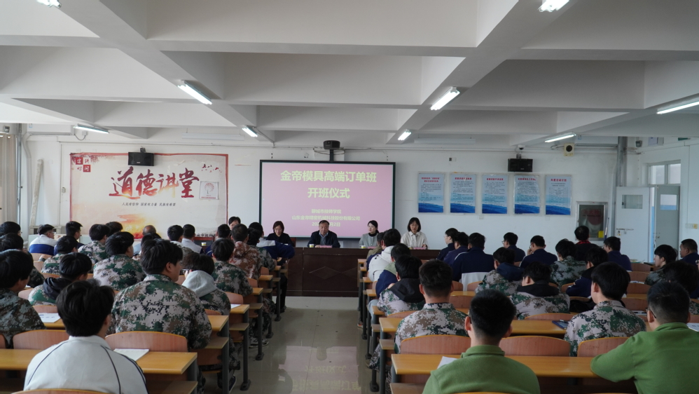 为深化产教融合、推进校企协同育人,4月2日上午,学院与山东金帝精密机械科技股份有限公司联合举办的金帝模具高端订单班开班仪式在勤业楼313连廊会议室举行。