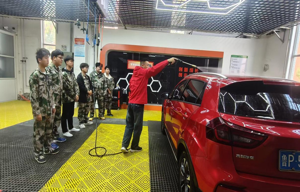活动由校企双方指导教师共同策划实施,选拔课程综合技能训练阶段表现突出的学生组建服务团队。活动前,伯乐车聘网资深技师刘新科结合企业服务标准,开展车身清洁、内饰养护、细节抛光等专项劳动技能培训,明确操作规范与安全注意事项;活动现场,学生们以劳动践行专业初心,分工完成车辆预洗、泡沫擦拭、轮毂清洁、内饰除尘等全流程服务,将课堂所学的汽车美容技能转化为务实劳动成果,用细致操作与耐心态度回馈学校和社会。