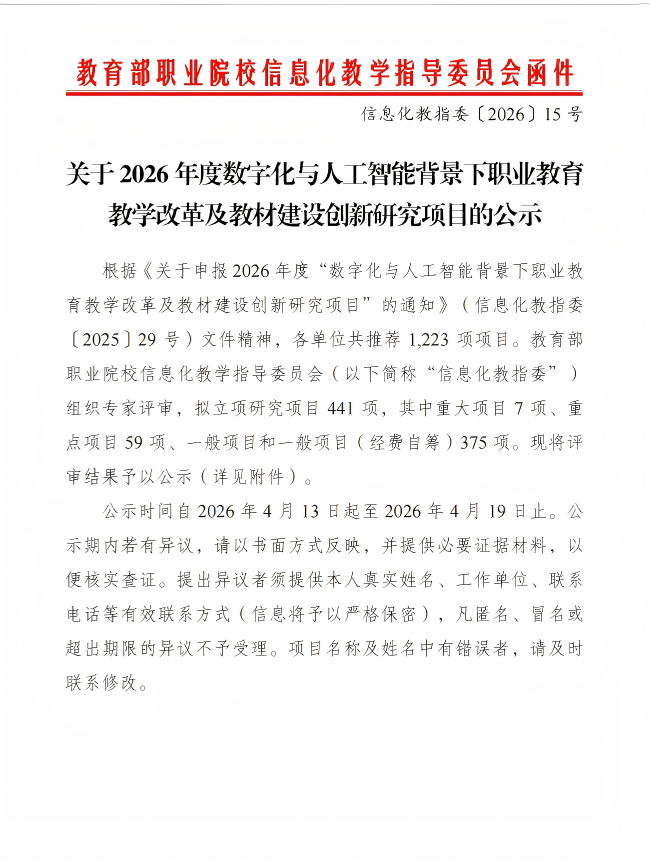 近日,教育部职业院校信息化教学指导委员会公布了2026年度“数字化与人工智能背景下职业教育教学改革及教材建设创新研究项目”立项名单,学院申报的《人工智能背景下孔繁森红色档案资源的数智化转化及应用》从全国1225项申报项目中脱颖而出,成功获批重点立项,这是学院在“人工智能+红色教育”领域取得的又一项标志性成果,也是学院作为孔繁森母校,在新时代挖掘孔繁森红色档案资源赋能思政育人、深入馆校合作的又一重要突破。