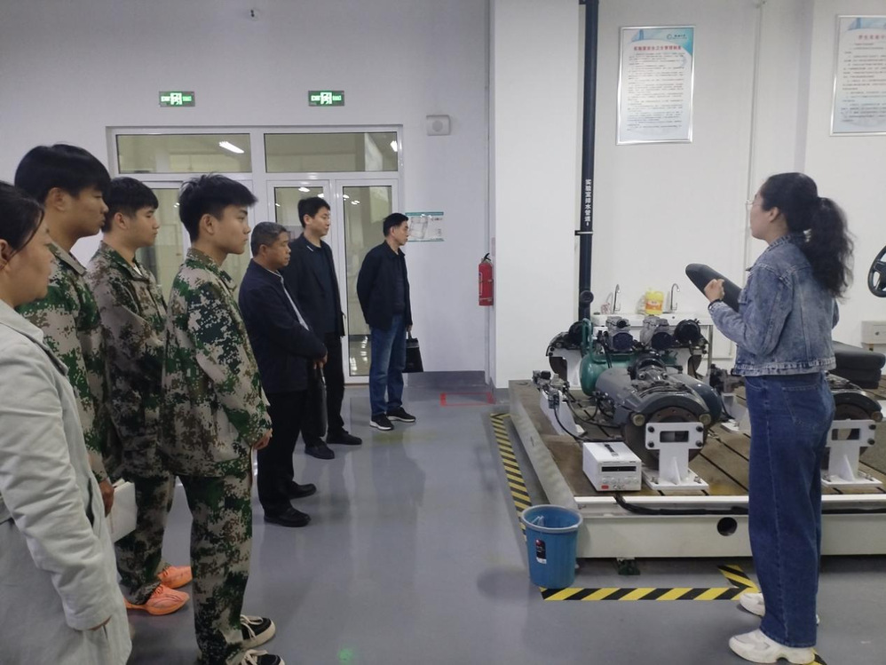 在聊城大学机械与汽车工程学院院长孙群、副院长赵岭随同下,马胜一行参观了高精度机械加工实训中心、学生创新实验室及智能控制仿真平台,深入了解本科阶段的实验条件和教学理念,为中职实践教学优化提供了重要参考。