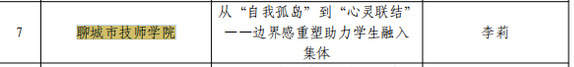 李莉《从“自我孤岛”到“心灵联结”——边界感重塑助力学生融入集体》,杨志《断榫与代偿:家庭支撑缺失下的行为重建实践》获优秀心理辅导个案;王林、邵帅《当恶语似钢刀刺来》作品获优秀心理健康教育微课;刘莹、尹茂东《新时代职业院校加强学生心理健康教育的策略》,李英梅、张丽梅、钱炳君的《多维协同与长效机制:中职学生心理健康教育体系建构》均获优秀心理健康教育论文。