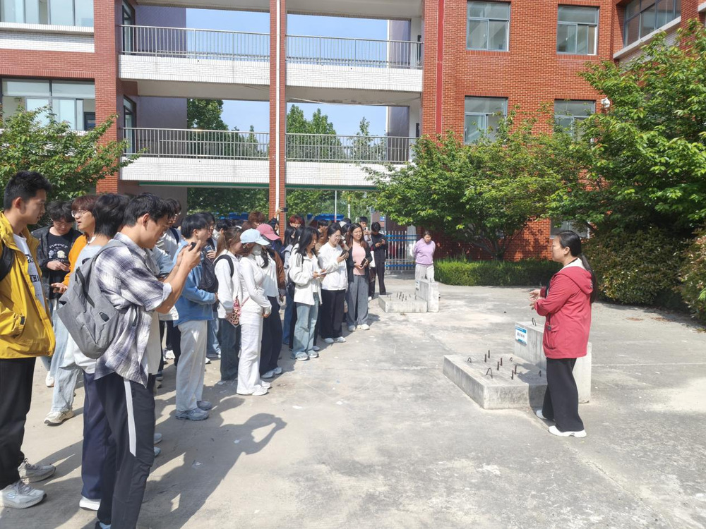 在装配式建筑体验基地与构件安装实训基地,装配式建筑专业带头人原筱丽详细介绍了装配式建筑的发展趋势、构件生产、吊装拼接及灌浆封缝等核心工艺,让来访师生近距离感受建筑工业化高效低碳、绿色环保的发展优势。