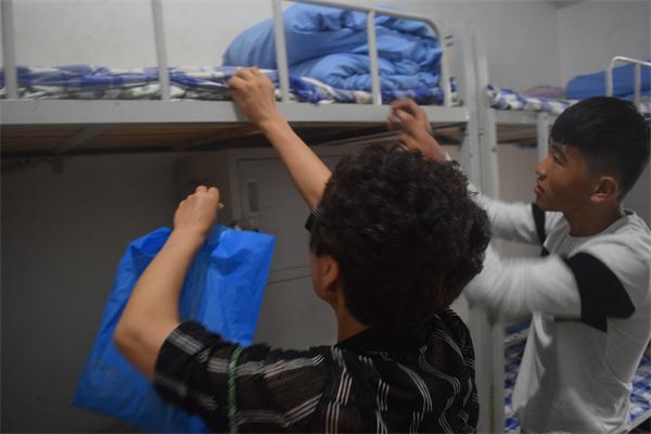 系副主任胡桂云教学生整理床单~