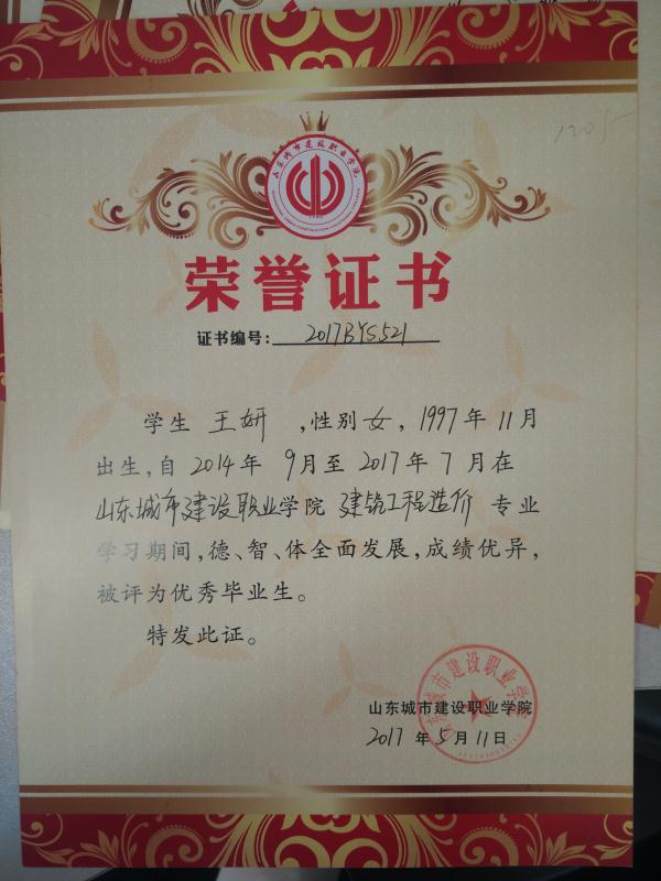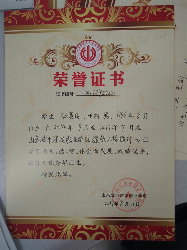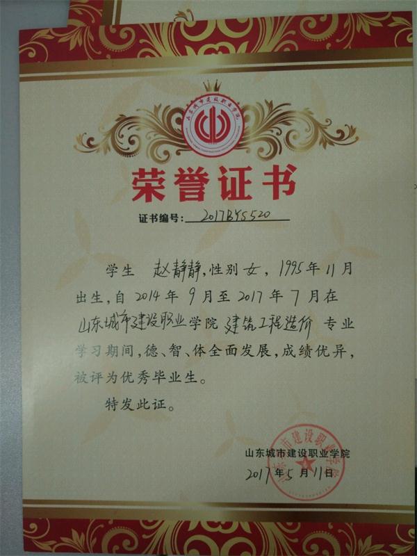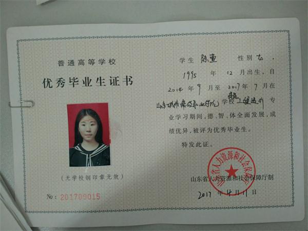 城市建设系2012级有四名学生在校期间,德、智、体全面发展,成绩优异,被山东城市建设职业学院评为优秀毕业生。