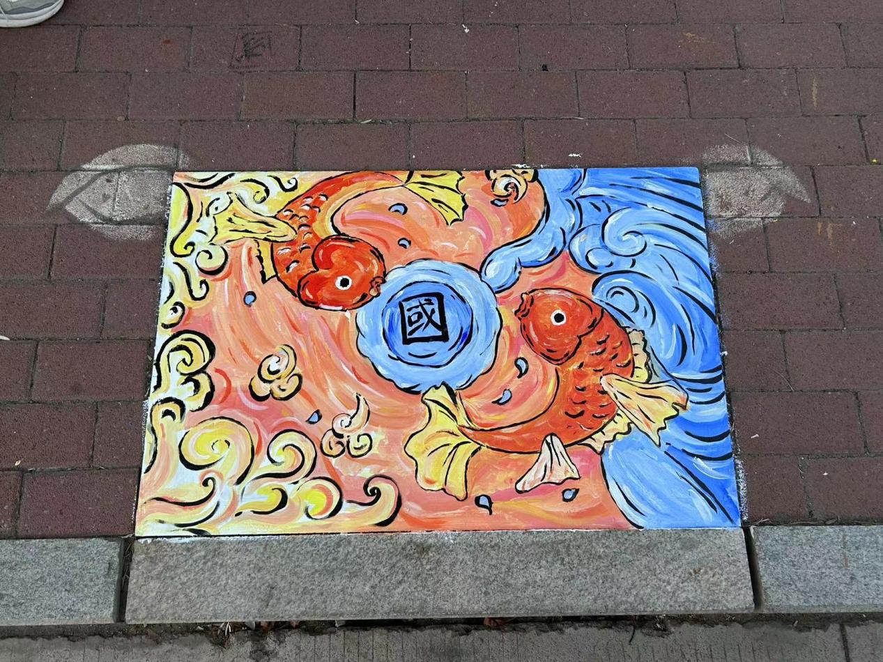 随着同学们的作品逐渐完成,路过的师生们被这些画面深深吸引,停下脚步驻足观赏,对这些五彩斑斓、富有创意的井盖,啧啧称赞。