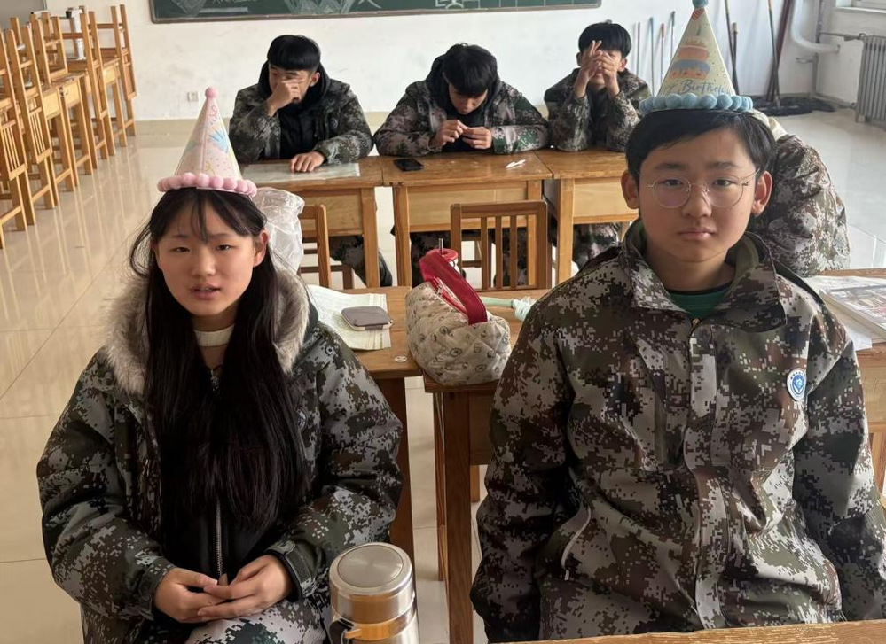 没有铺张的布置,只有课桌上摆着的奶油蛋糕,和给孩子们买的蜜雪冰城饮品。当我把插着蜡烛的蛋糕端进教室时,原本喧闹的教室瞬间安静下来,紧接着便是此起彼伏的欢呼。杨子欣有些腼腆地红了脸,邢卓越则笑着挠了挠头,被大家簇拥着站到了蛋糕前。