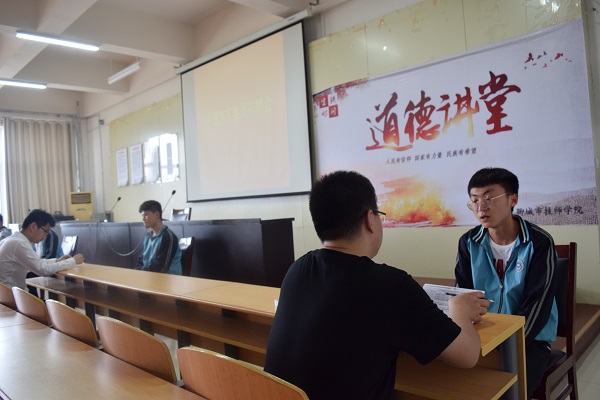 5月17日下午2点半,中通客车冠名班在明志楼412连廊教室进行一对一面试。100余名毕业班学生参加。