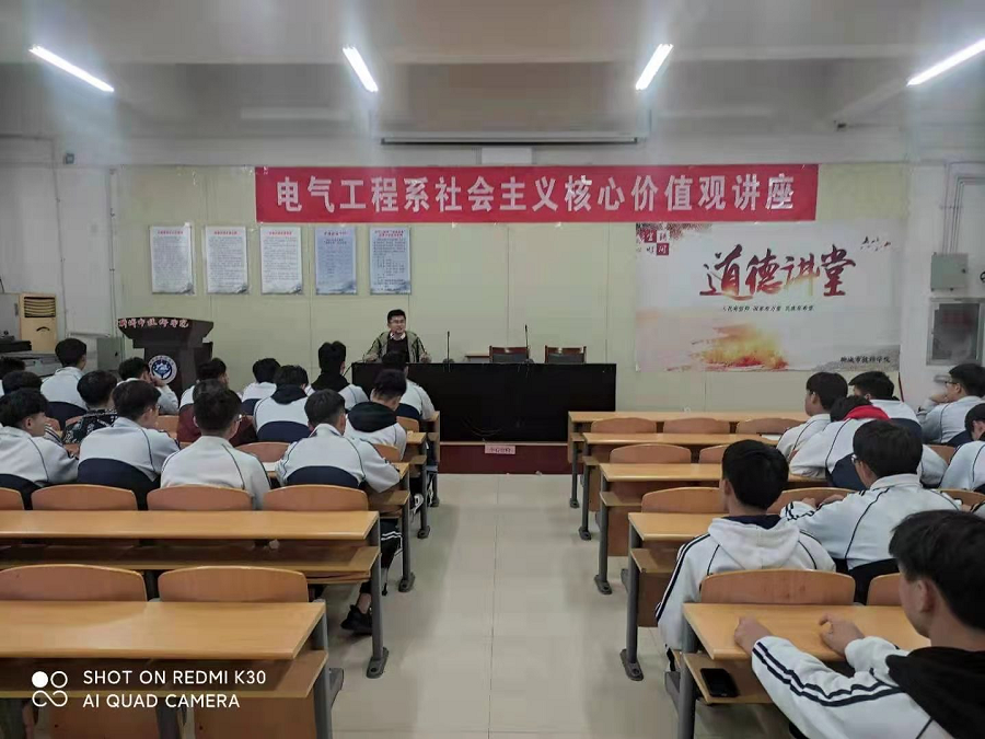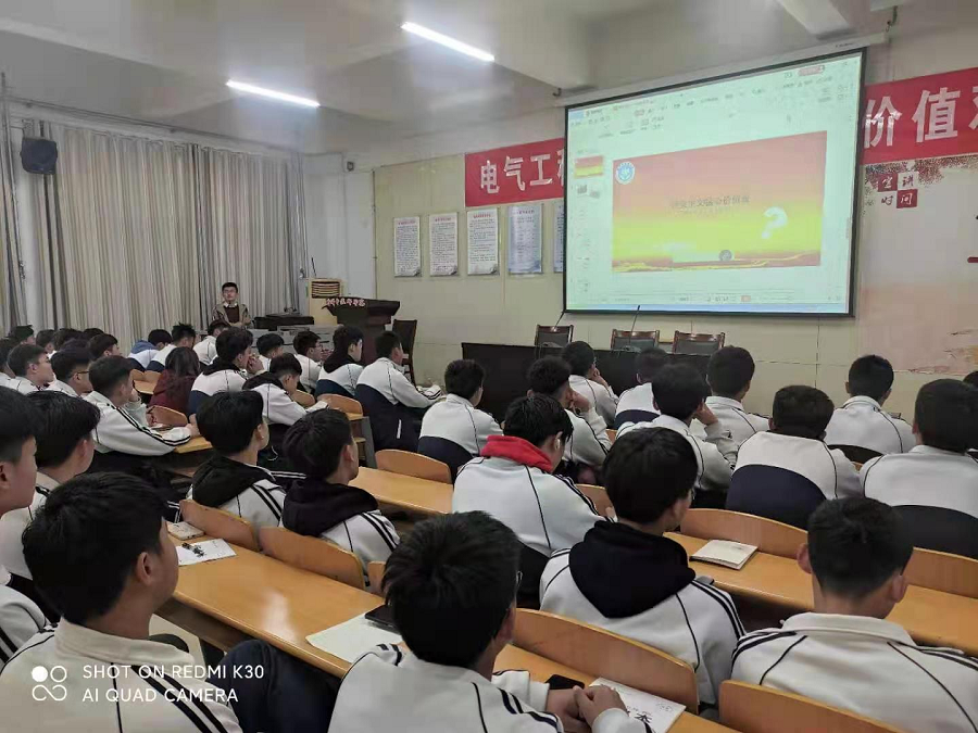 习总书记说:“青年一代有理想、有本领、有担当,国家就有前途、民族就有希望。”为了加强青少年学生思想引领工作,深化校风、学风建设。电气工程系坚持党建带团建,团建促党建这一思想工作。2021年3月29日下午,电气工程系全体学生会成员在四楼连廊进行社会主义核心价值观的聆听。此次会议由党员张繁周老师主持。