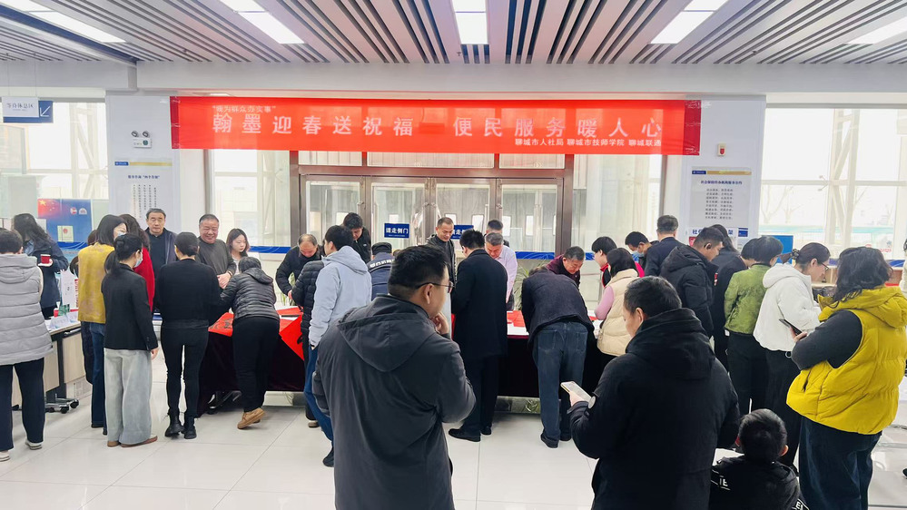 新春将至,年味渐浓。为弘扬中华优秀传统文化,丰富群众精神文化生活,学院工会精心组织学院书法协会骨干教师,先后走进聊城市人社局政务服务大厅、傅斯年陈列馆、金柱东苑小区,开展“迎新春、写春联、送万福”系列公益活动。