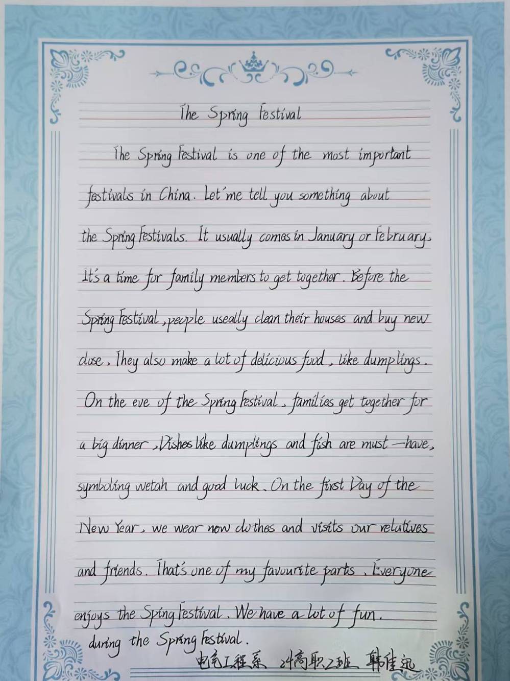 作品征集分为英语书写作品与英语手抄报两大类。在书写作品板块,同学们于四线三格纸上凝神书写,字母工整规范,版面洁净优美,展现了扎实的英文书写基本功。在手抄报创作板块,众多兼具美术特长的学生充分发挥想象力与设计才能,制作出一幅幅图文并茂、构思巧妙的精美小报。斑斓的色彩、生动的插图与规范且富有个性的英文书写相得益彰,将主题思想进行了生动而多元的视觉化诠释。