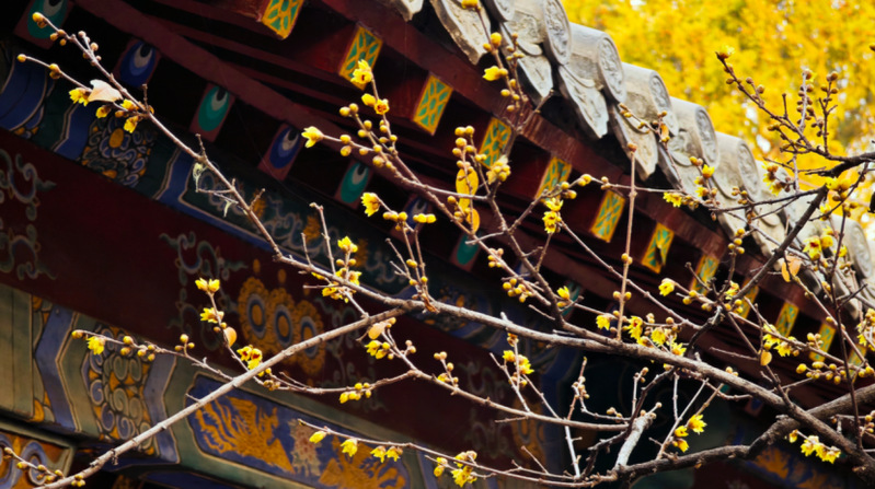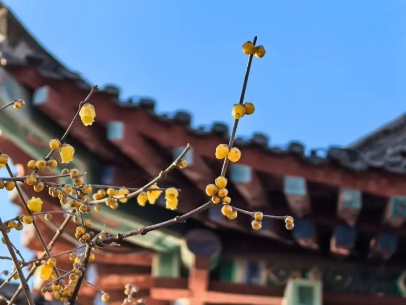 烟台蓬莱阁的腊梅是寒冬的雅致符号