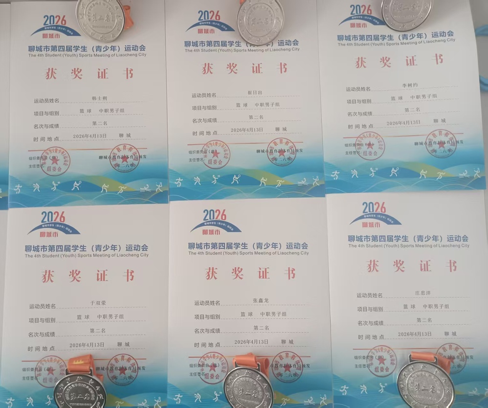 近日,聊城市第四届学生(青少年)运动会暨全市中小学生体育联赛篮球比赛(中职组)落幕。我院篮球队在主教练于龙飞的带领下,凭借默契协作与顽强拼搏,一路过关斩将,最终斩获亚军,为学院赢得荣誉。