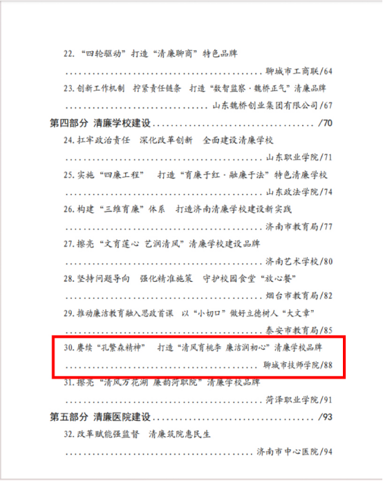 近日,我院清廉学校建设经验做法,以《赓续“孔繁森精神” 打造“清风育桃李 廉洁润初心”清廉学校品牌》为题,被全省建设清廉山东工作联席会议办公室纳入典型案例汇编。