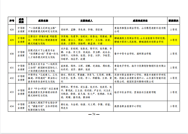 2022年8月8日,《关于公布2022年省级教学成果奖(职业教育类)获奖名单的通知》(鲁教职函〔2022〕35号)发布,我校获一等奖1项,二等奖1项。