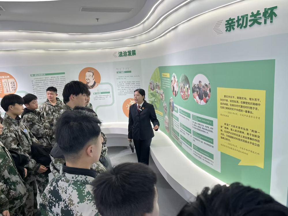 在基地讲解员的引导下,同学们依次参观了学校保护、网络保护、政府保护等多个展区。从《中小学生守则》、《高等学校学生行为准则》的规则学习,到《预防未成年人犯罪法》、《未成年人保护法》的条文解读,从网络安全风险的案例警示,到人格社会心理发展阶段的科学认知,同学们通过展板展示、视频演示、互动讲解等形式,系统了解了未成年人权益保护、法治行为规范等知识。