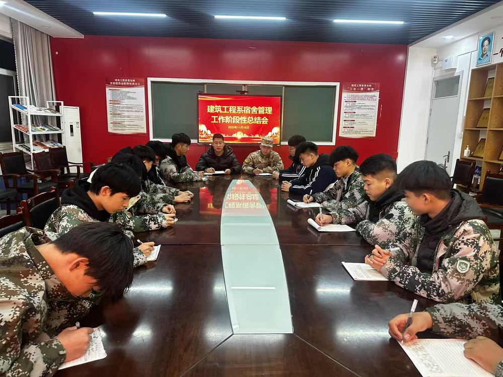 为规范宿舍管理、筑牢安全防线,2025年11月18日,建筑工程系团总支书记薛泽东主持召开宿舍管理工作阶段性总结会,准军事化教官刘国港和系宿舍管理学生会骨干成员参会。
