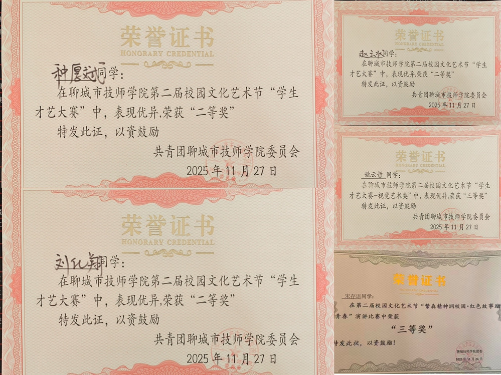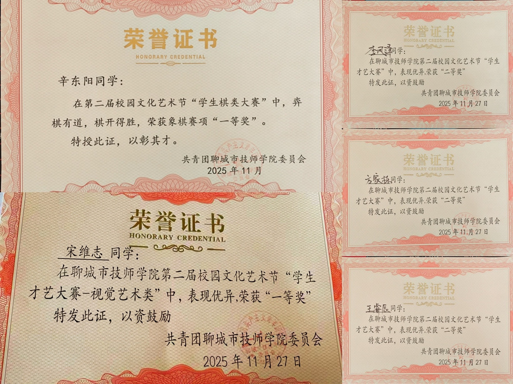 从棋盘对弈的沉着到才艺舞台的灵动,从视觉创作的巧思到演讲赛场的赤诚,汽车学子以多元才华诠释青春风采,展现了系部素质教育的成效。这些荣誉是学子们用心耕耘的成果,也激励着更多汽车学子在才艺领域绽放光芒。