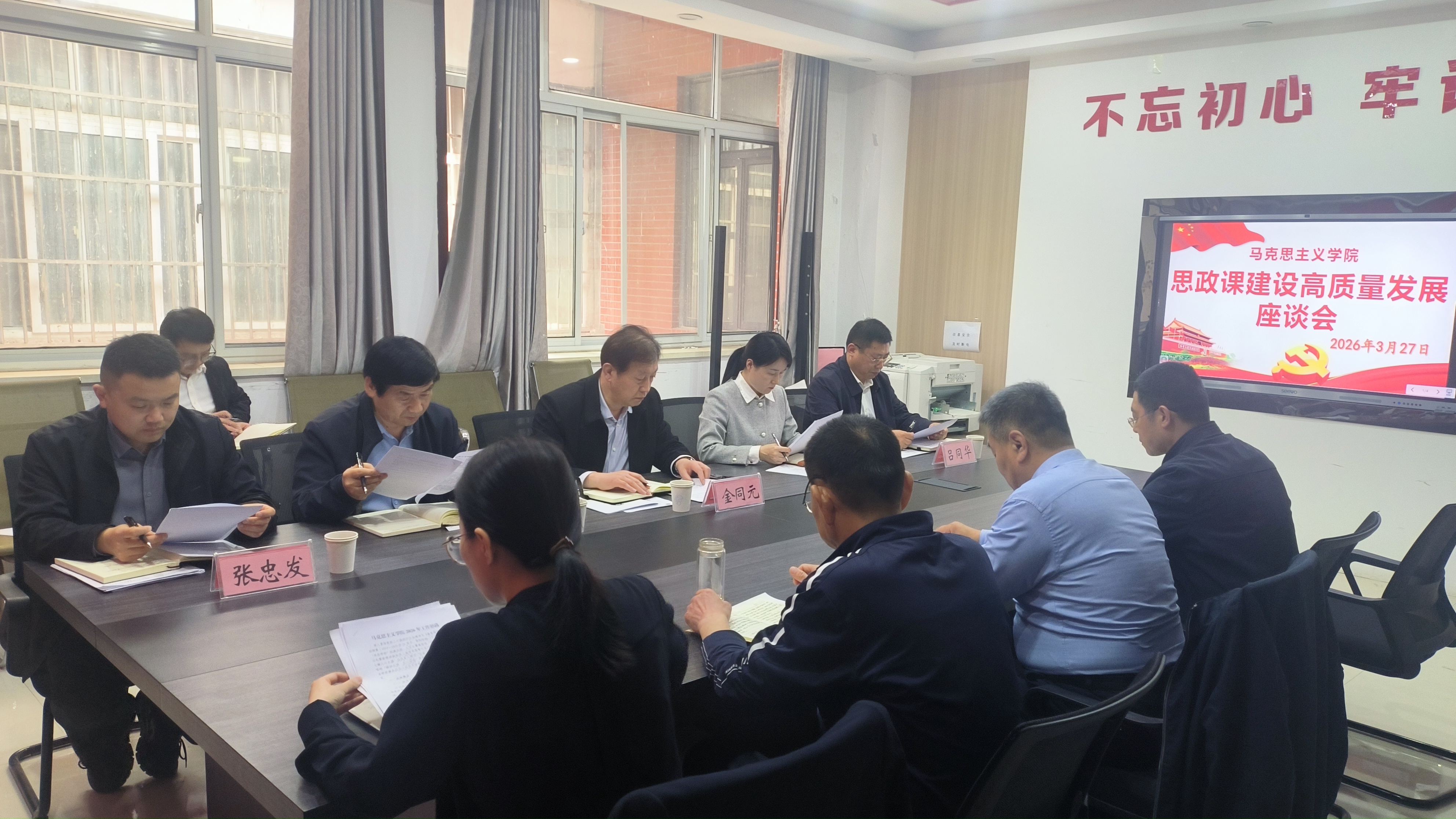 近日,思政课建设高质量发展座谈会在汇智楼A401会议室召开。学院党委书记金同元出席会议,党委委员、组织人事处处长孔晓燕主持会议,马克思主义学院院长王海民及全体教师参加活动。