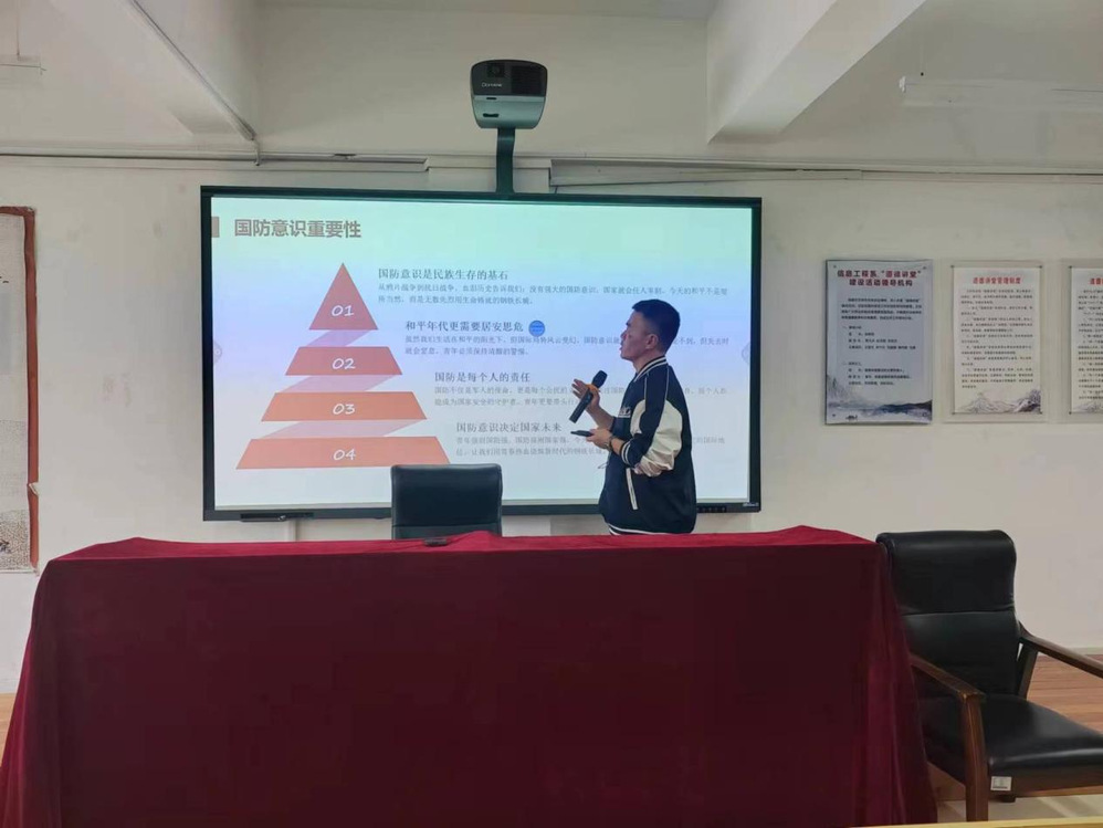 开班仪式结束后,第一堂团课正式开讲。智能制造系团总支书记于龙飞以“青春铸国防 使命勇担当”为主题,通过互动提问、案例分析等方式,引导学员结合生活实际分享对“国防担当”的理解。