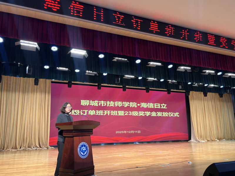 2025年12月11日下午,学院在实训楼二楼学术报告厅隆重举行海信日立订单班开班暨奖学金发放仪式。学院党委副书记、院长徐公义,海信日立公司综合管理部部长刘玉秀出席仪式并致辞。仪式由学院校企合作与招生就业服务中心主任高红主持。