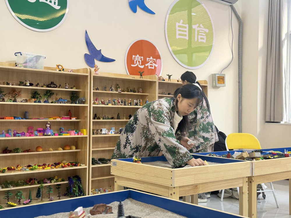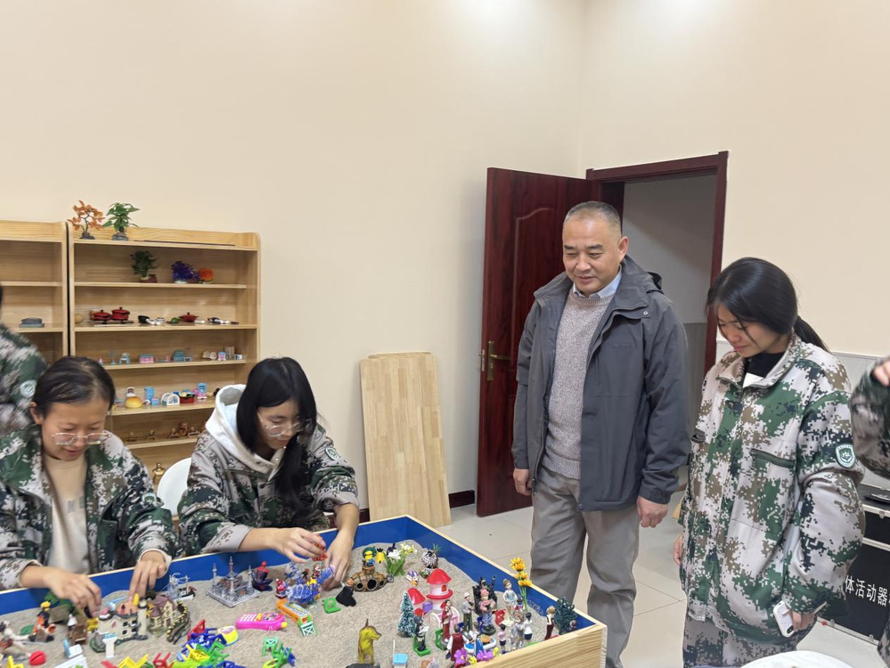 在班主任的精心组织和心理委员的积极配合下,本次活动设置了两个特色体验环节。在沙盘游戏区,同学们通过团队协作创作沙盘作品,在无声的交流中增进理解与包容;在运动放松区,同学们通过拳击运动释放压力,在酣畅淋漓中感受身心放松的愉悦。系主任深入参与各个环节,与同学们亲切互动,现场气氛温馨而热烈。