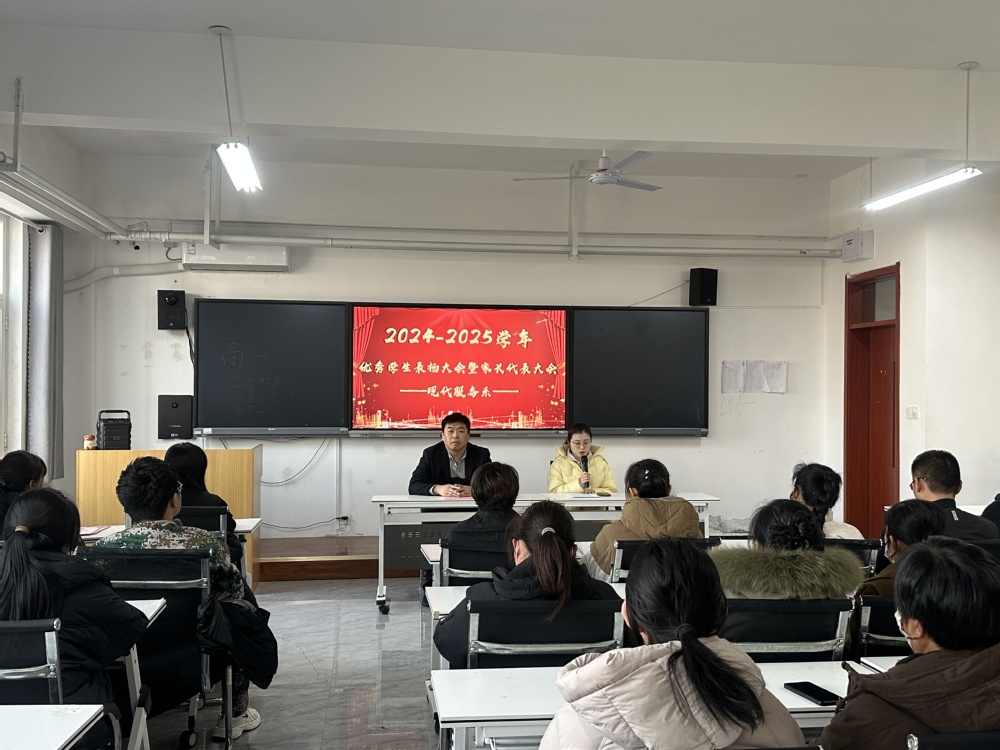现代服务系隆重召开2024 - 2025学年校内奖学金表彰大会及家长代表大会,系领导、教师代表、获奖学生及家长代表共同参与。