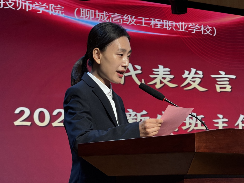 新生班主任代表王丹晨老师、老生代表杨效晨、新生代表梁艺馨依次发言。
