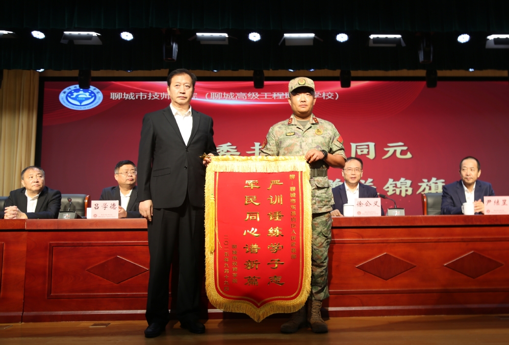 金同元向承训单位东昌府区人民武装部赠送锦旗,对承训单位的辛勤付出表示诚挚感谢。