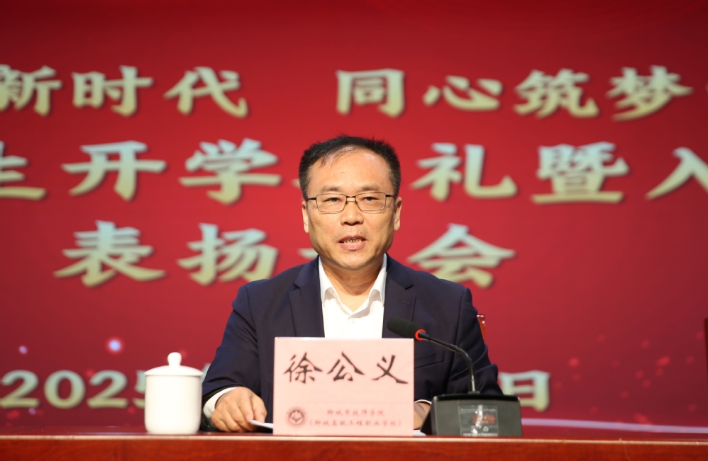 9月19日,学院举行2025级新生开学典礼暨入学教育表扬大会。学院党委书记金同元,党委副书记、院长徐公义等领导班子成员出席活动。开学典礼由学院党委委员、副院长王玉梅主持。