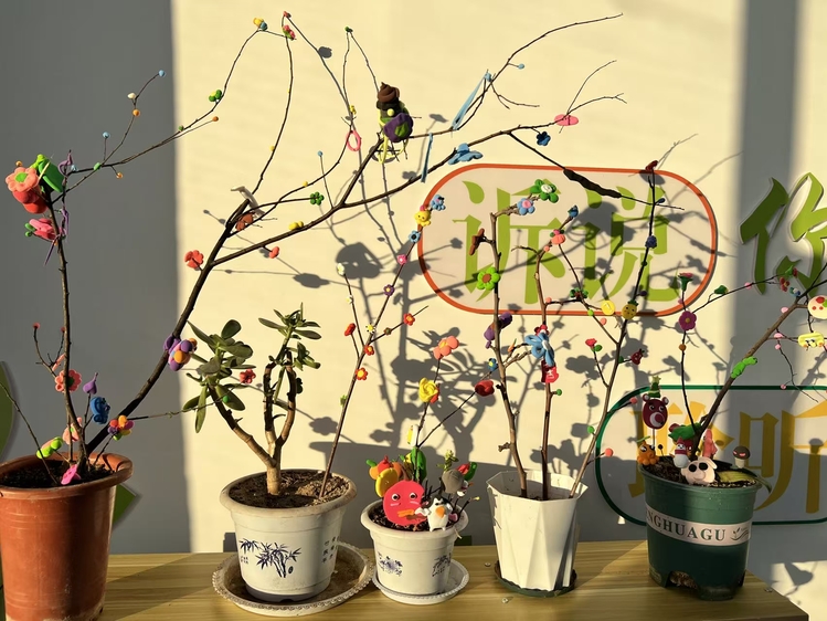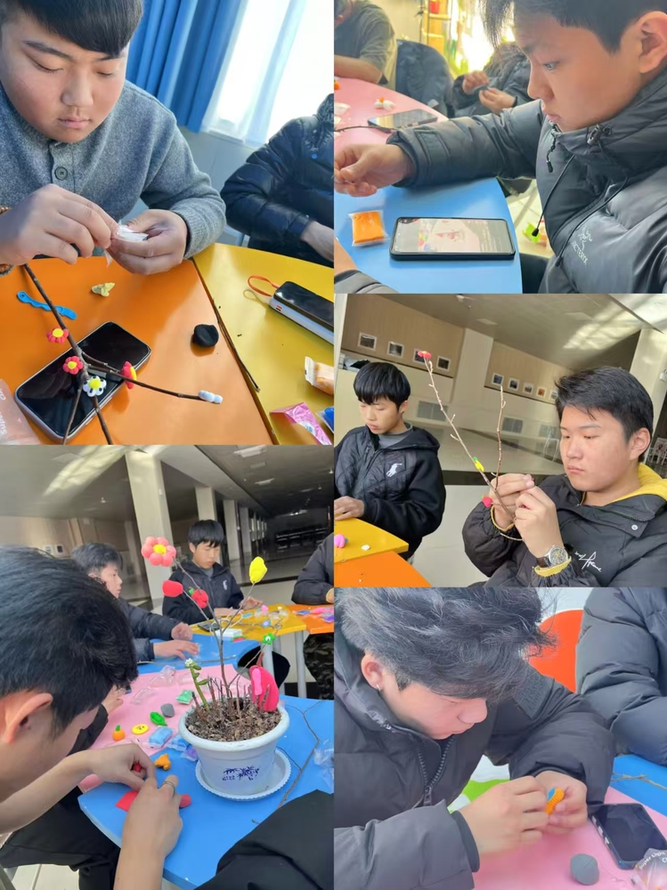 钱老师以“生命的韧性”为切入点,通过互动游戏帮助学生打破心理壁垒。在“枯树逢春”创作环节,同学们分组协作,运用彩色粘土为光秃的树枝赋予新生。学生们在揉捏、塑形中实现自我表达,通过团队协作感受社会支持,这种非言语疗愈方式更能触达内心深处。