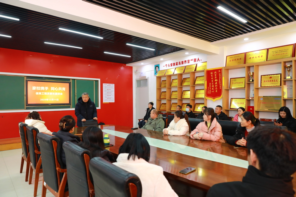 12月11日下午,信息工程系学生表彰大会在行知楼213隆重举行。本次大会邀请受表彰学生的家长共同参与,见证学子荣誉时刻,并在会后举行了以“家校携手、同心共育”为主题的家长座谈会,搭建家校沟通桥梁,共绘育人同心圆。