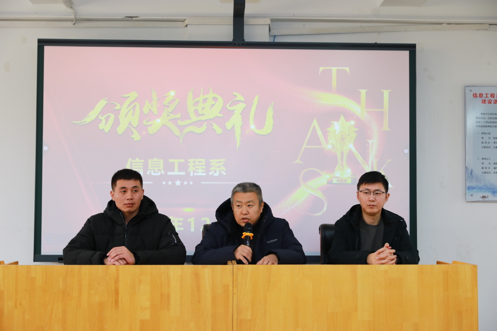 信息工程系副主任贾天洪向所有获奖同学表示热烈祝贺,对远道而来的家长表示诚挚欢迎。贾主任指出,本次大会不仅是对优秀学子的肯定,更是对信息工程系人才培养成果的集中展示。“我们特别邀请家长共同见证这一时刻,是因为学生的成长离不开家庭的滋养,教育的成效需要家校共同夯实。”